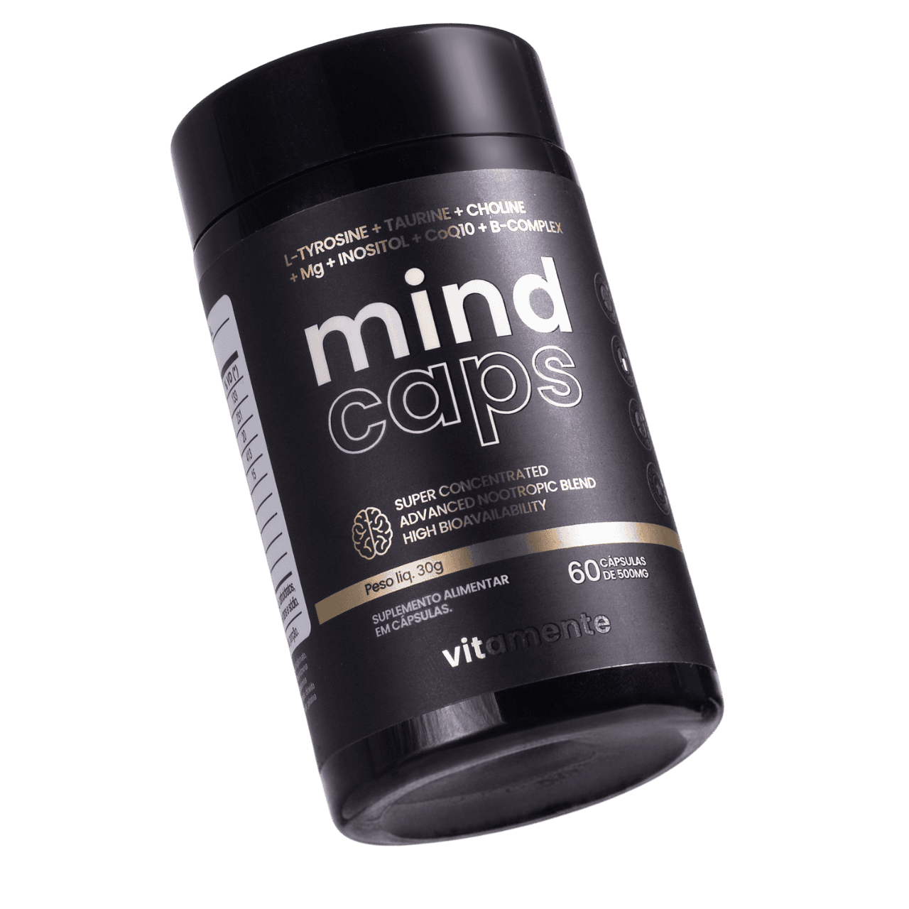 O Mind Caps combina L-tirosina, taurina, colina, inositol, coenzima Q10, magnésio e vitaminas do complexo B em uma fórmula pensada para o uso diário, oferecendo suporte nutricional de forma equilibrada e sem cafeína.